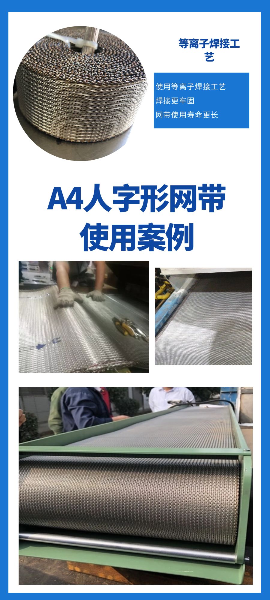 生產的網帶產品具備耐磨耐腐蝕、耐高溫、不易變形、高強承重等多種優(yōu)異性能,可以根據具體需求,定制特殊性能的產品。
