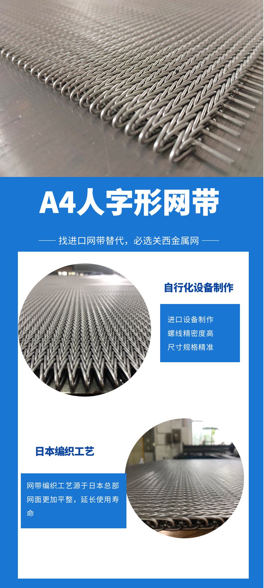 源自日本臺灣的先進網帶生產工藝,同時堅持自主研發(fā),結合現代工業(yè)需求,具有等商子焊、網帶去油脂處理、扁線編織等多種特殊工藝。 | ![]() |